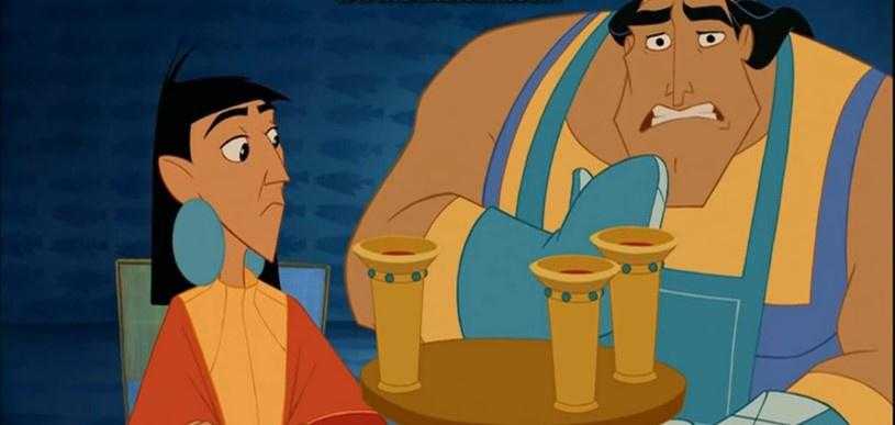 - Куско – заносчивый и самовлюбленный император, думающий только о развлечениях. Хочет построить себя развлекательный дом по поводу своего дня рождения на месте деревни, главой которой является Пачу. Был превращён в ламу при помощи магического зелья, которое ему случайно подлили вместо отравы.