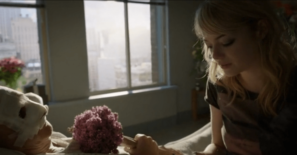 Сэм наконец-то приносит Томпсону его любимые цветы, да и в целом демонстрирует обеспокоенность здоровьем своего отца, что достаточно сильно контрастирует с ее привычным поведением. Повязки на лице Риггана повторяют форму маски Бёрдмэна, и он, сняв ее, исчезает в оконном проеме: вероятно, воспаряя ввысь.