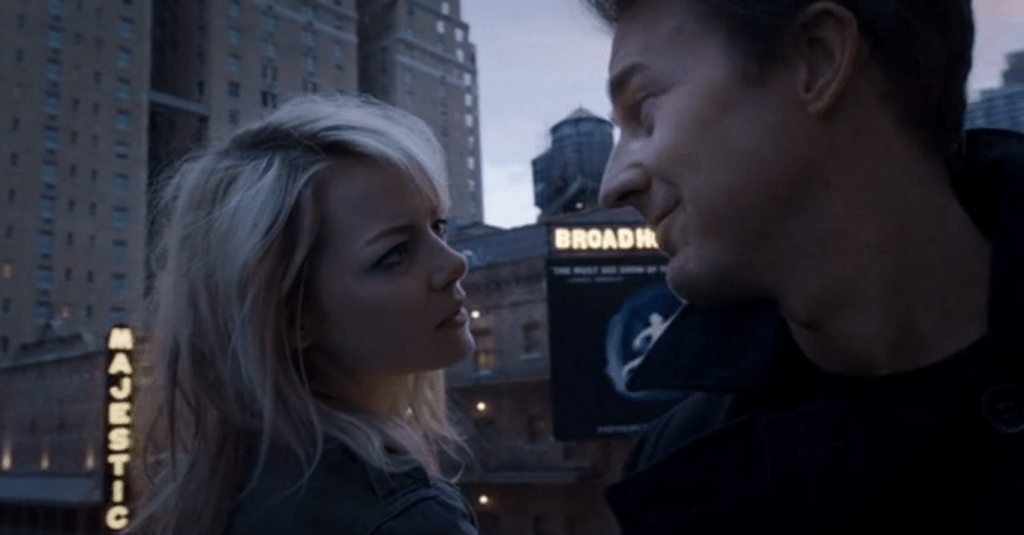 Что же касается остальных актеров, то тут все не так однозначно. Хотя некоторые коллеги признавались, что работать с Эдвардом Нортоном порой бывает непросто, все же у него нет славы взбалмошного и эксцентричного актера, готового отчебучить что угодно в стремлении доказать свою исключительность. Персонаж Наоми Уоттс тоже похож на нее лишь отчасти, да и в Эмме Стоун не так уж много всего от Сэм.