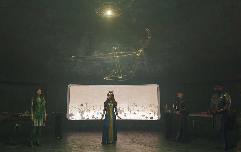 Сразу после первых титров зритель увидит космический корабль самого современного типа. Именно на нем произойдет определяющая встреча Вечных.