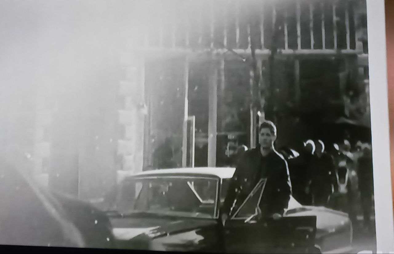 эпизоде. На оригинальном фото из машины выходят Дин и его младший брат Сэм,