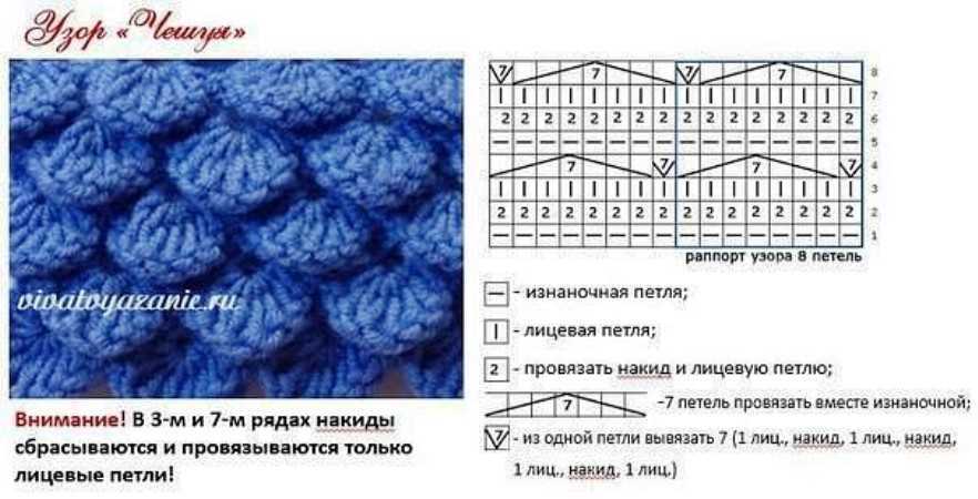 А вязать можно разными узорами. Например, можно использовать для вязания узор, который очень точно имитирует рыбью чешую. Вот такой: