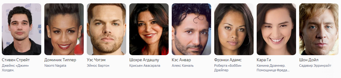 - Джеймс «Джим» Холден – Стивен Стрейт («Сити-Айленд», «Город мечты», «Третья смена», «Реванш»);